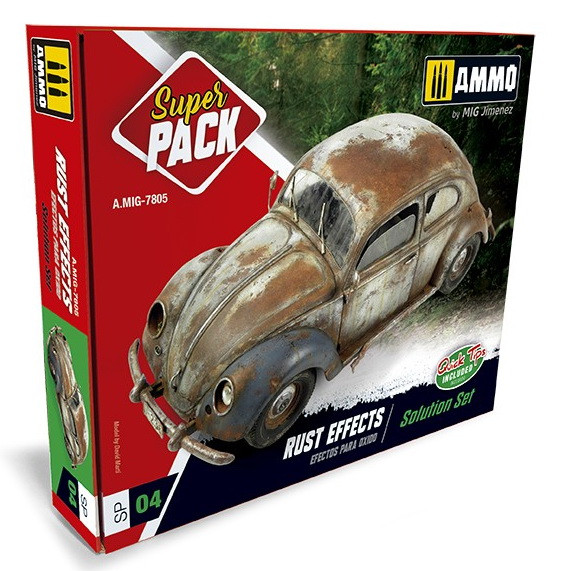 Contains the base colours, as well as the essential products used to accurately imitate surface rust, stains, textured rust, scratches, and rust streaks produced by running water and gravity. This kit is the ultimate solution for all skill levels and those looking for the best colours and products used to authentically reproduce rust effects of every type all in one box.