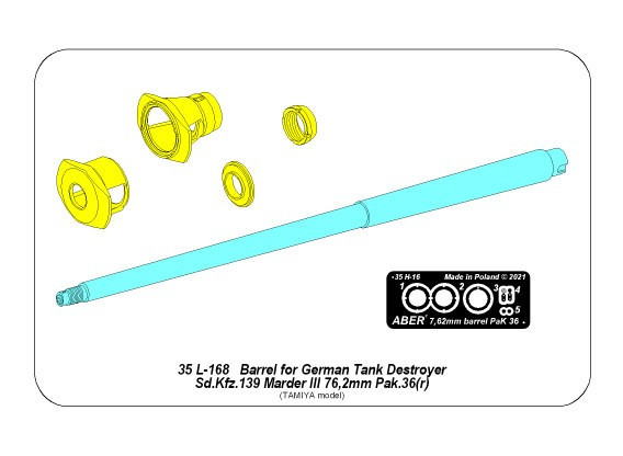 Aber Barrel 76,2mm Pak 36(r) for German Tank Destroyer Marder III (Sd.Kfz. 139) (Tamiya)