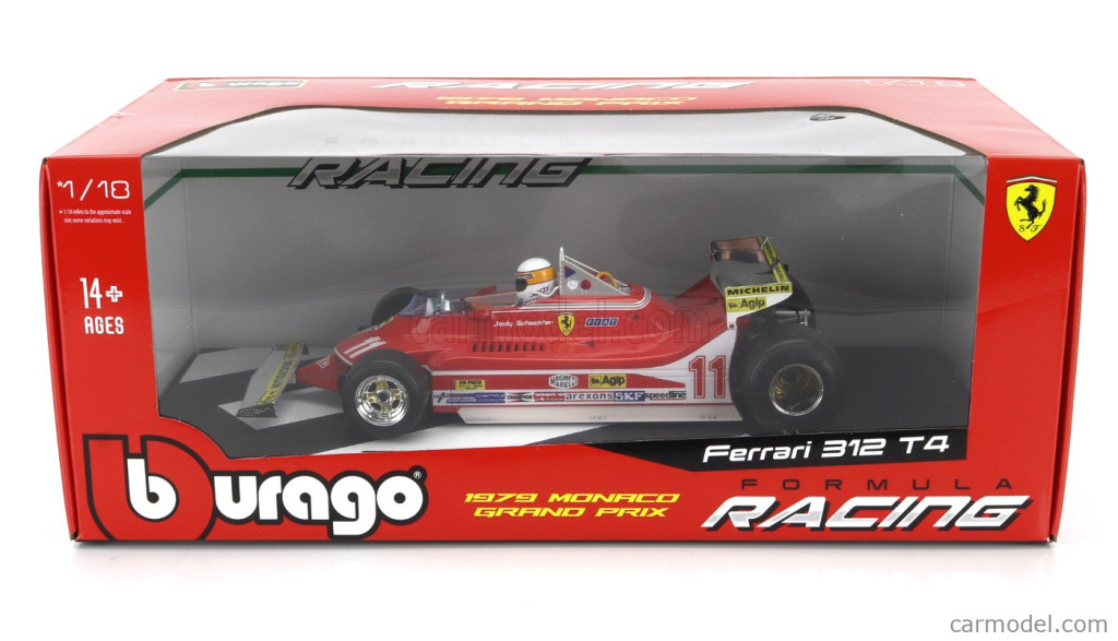 Burago FERRARI F1 312T4 SHORT TAIL N 11 WINNER MONACO GP JODY SCHECKTER (WITH PILOT) 1979 WORLD CHAMPION