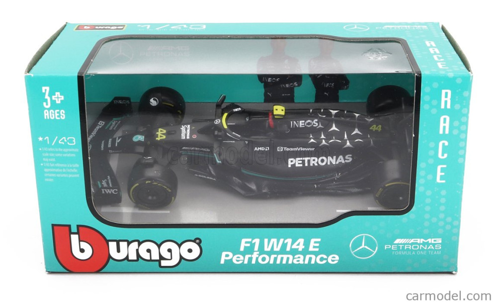 Burago MERCEDES F1 W14 TEAM MERCEDES-AMG PETRONAS FORMULA ONE N 44 SEASON 2023 LEWIS HAMILTON