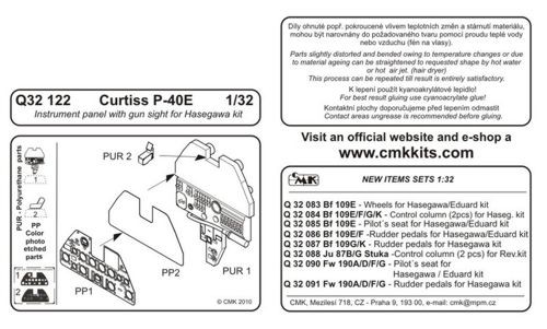 CMK Curtiss P-40E Kittyhawk/Warhawk Instrument panel with gunsight
