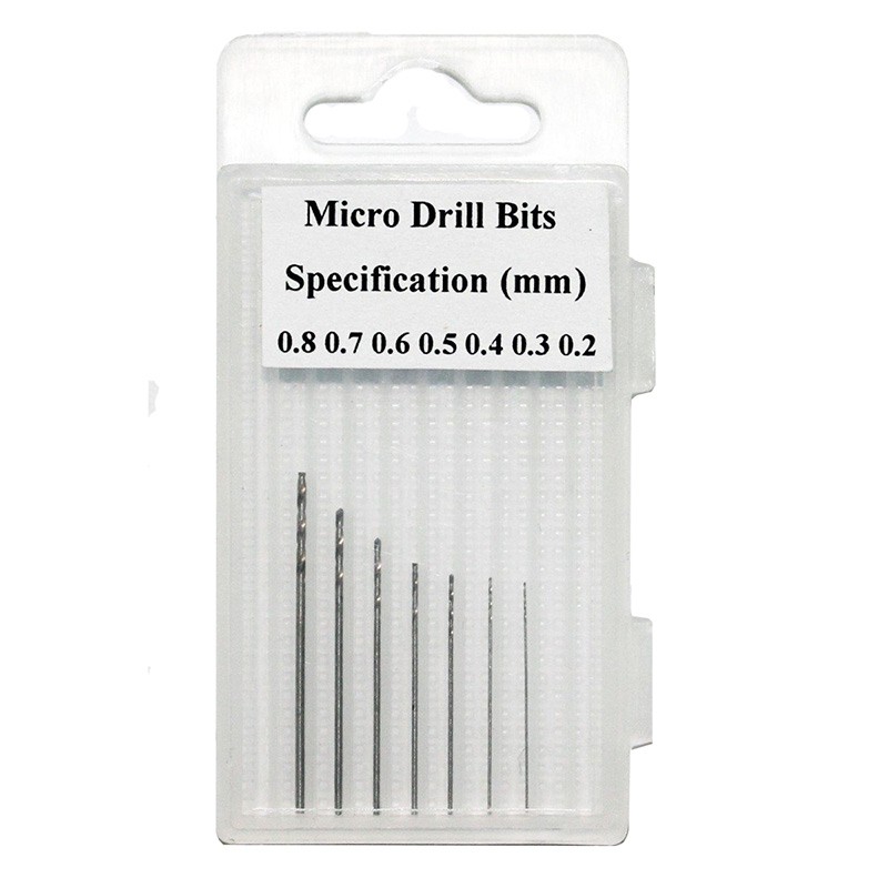 7 darabos fúró készlet. 0,2 - 0,8 mm-ig
