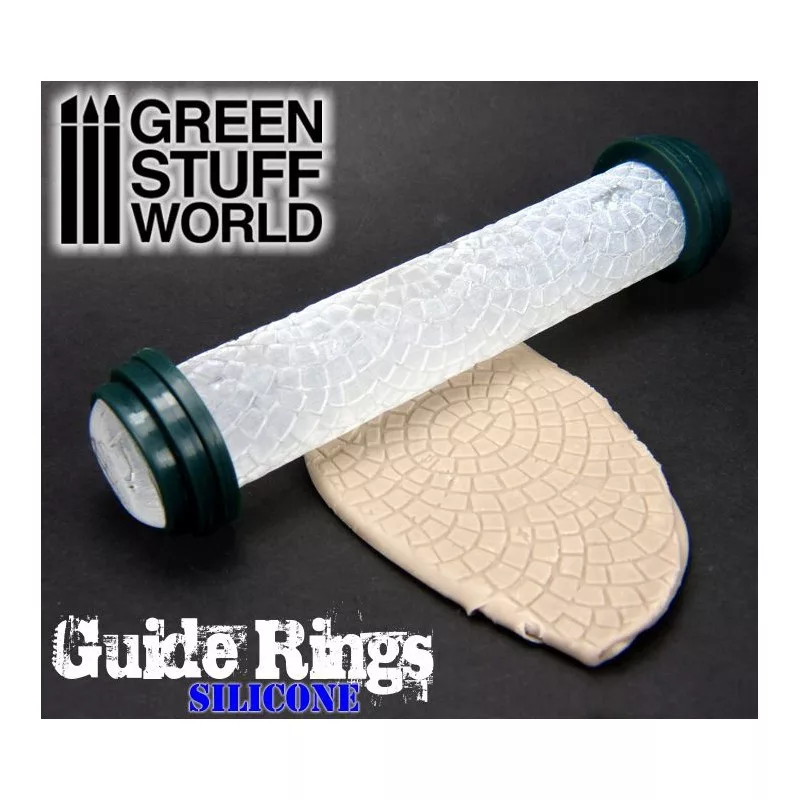 Simply slide the rings of your required putty or clay thickness onto either end of the rolling pin, and roll until the guide rings touch the work surface.
