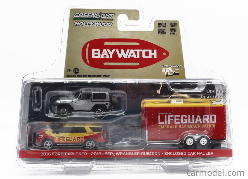 Greenlight Ford EXPLORER 2016 + JEEP WRANGLER RUBICON 2013 WITH TRAILER LIFEGUARD