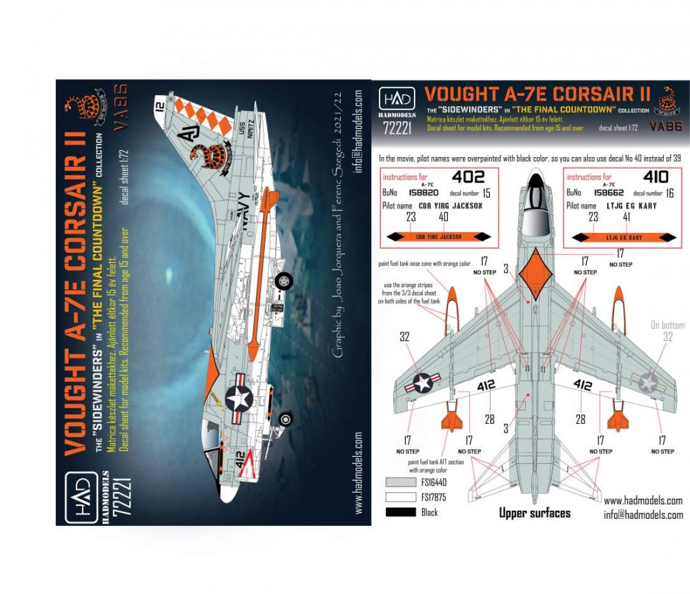 HAD A-7E Corsair VA-86 ”Sidewinders” in ”The final countdown” matrica