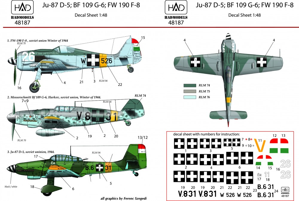 HAD Bf 109 G-6; FW 190 F-8 ;JU-87D-5 Magyar jelzésekkel matrica