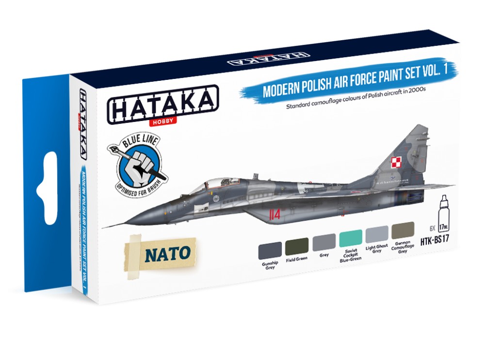 HTK-B031 – Gunship Grey – FS36118, used on upper surfaces in modern camouflage schemes of Polish Mig-29s. Also overall colour of Polish C-130Es