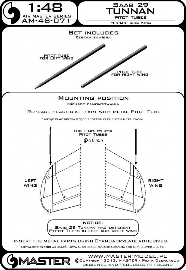 Master Model SAAB 29 Tunnan - Pitot Tubes