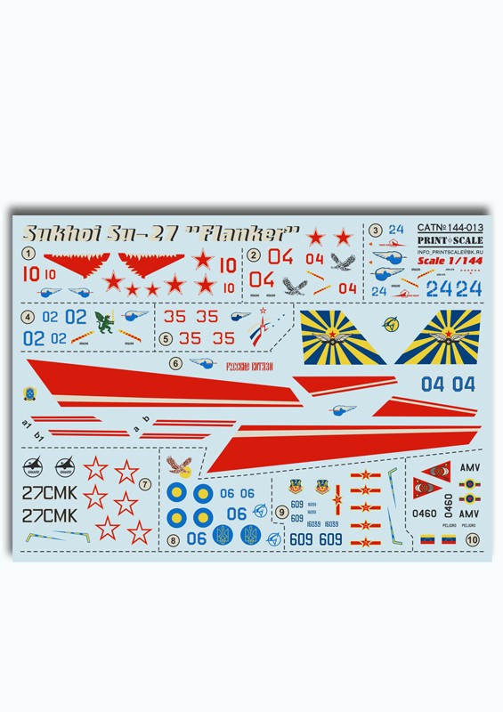 1:144 méretarányú matrica szett, repülő makettekhez.