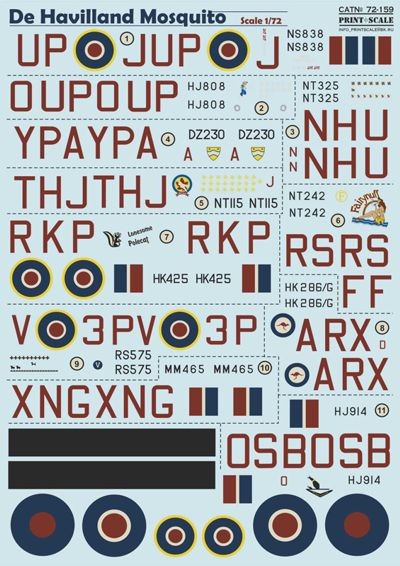 Print Scale de Havilland Mosquito FB Mk.IV NF.XXX NF.II NF.VIII NF.XVII FB Mk.VI NF.XIII RCAF RAF RAAF