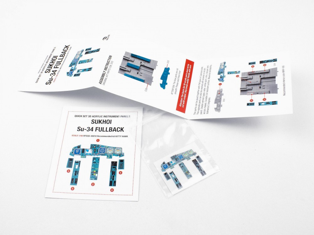 1:48 méretarány. A termék repülőgépek pilótafülkéjének feljavításához alkalmas. 3D-s hatású plasztikus, nem sík felülettel rendelkezik. A termék cyanoakrilláttal ragasztható legjobban, de alkalmazható PVA vagy egyéb makettragasztó is. A termék bemosható olajbázisú és akrill festékkel egyaránt illetve mérsékelten észterbázisú festékkel is. A termék minimálisan hajlítható, csiszolható.