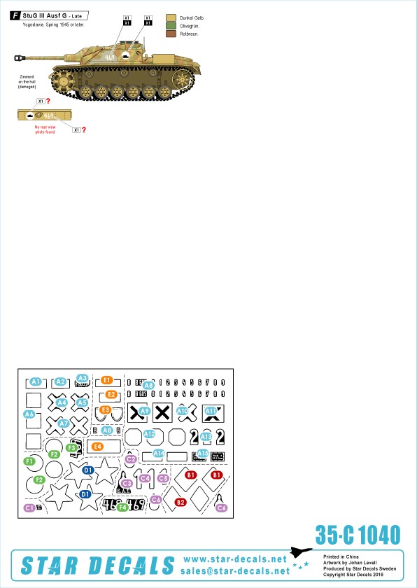 Star Decals Axis/Eastern Europe Sturmgeschutz/StuG.III #2. Bulgaria, Spain, Italy, Yugoslavia. matrica
