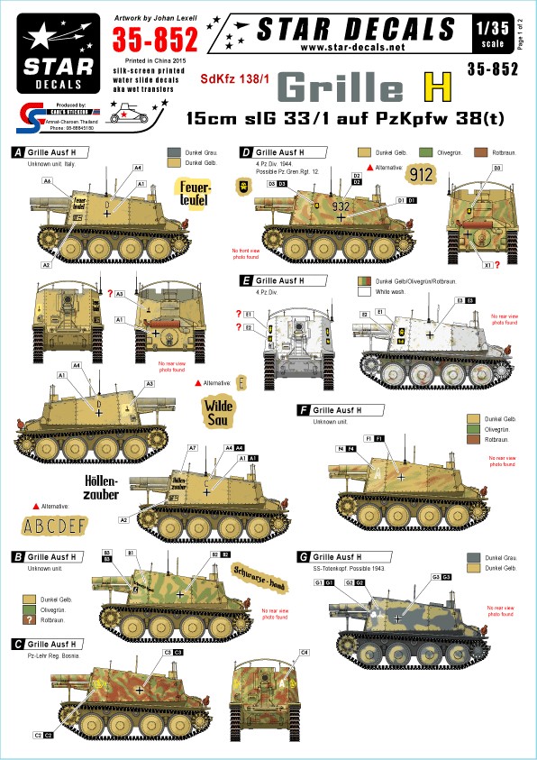 Star Decals Grille Ausf.H Sd.Kfz.138/1. 15cm sIG 33/1 auf Pz.Kpfw 38(t) matrica