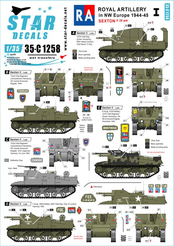 Star Decals Royal Artillery # 1 matrica