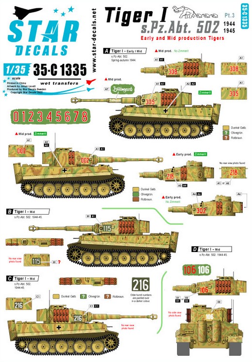 Star Decals Tiger I. sPzAbt 502 # 3. Early / Mid production Tigers 1944-45 matrica