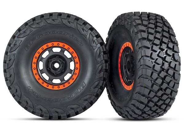Traxxas Tires and wheels, assembled, glued (Desert Racer® wheels, black with orange beadlock, BFGoodrich® Baja KR3 tires) (2)