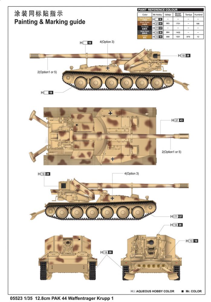 Trumpeter 12,8cm PAK 44 Waffenträger Krupp 1 makett