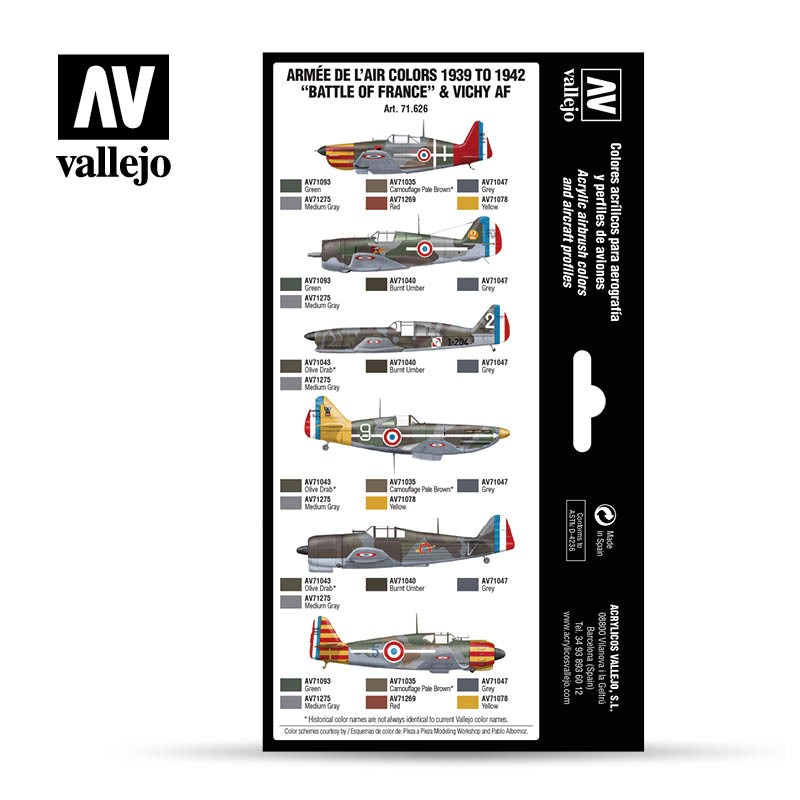 Vallejo Model Air Armée de l’Air colors 1939 to 1942 “Battle of France” & Vichy AF Paint Set