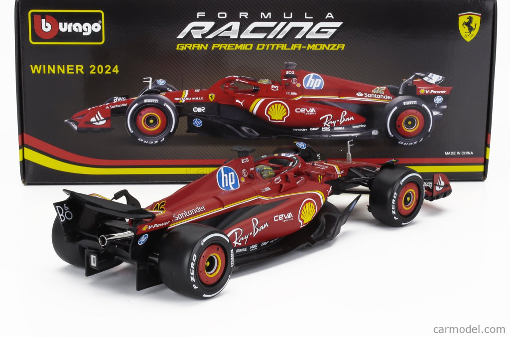 Burago FERRARI F1 SF-24 TEAM SCUDERIA FERRARI N 16 WINNER ITALY MONZA GP 2024 CHARLES LECLERC