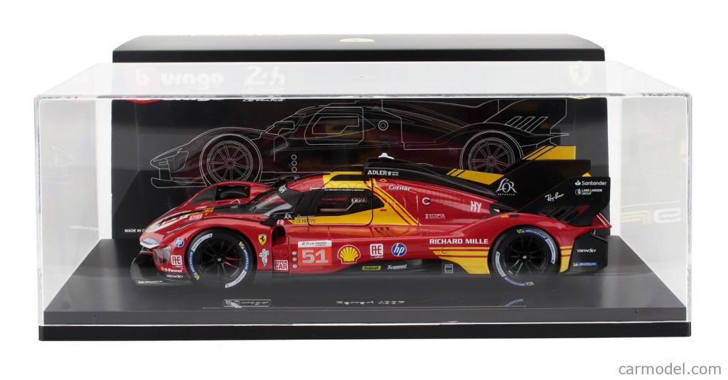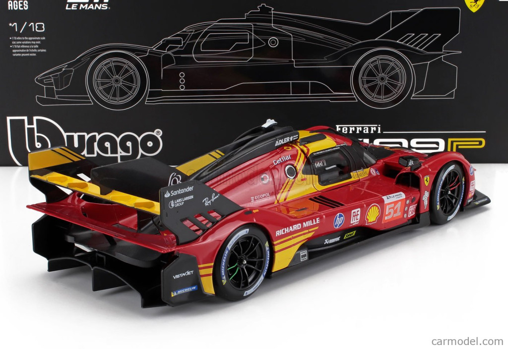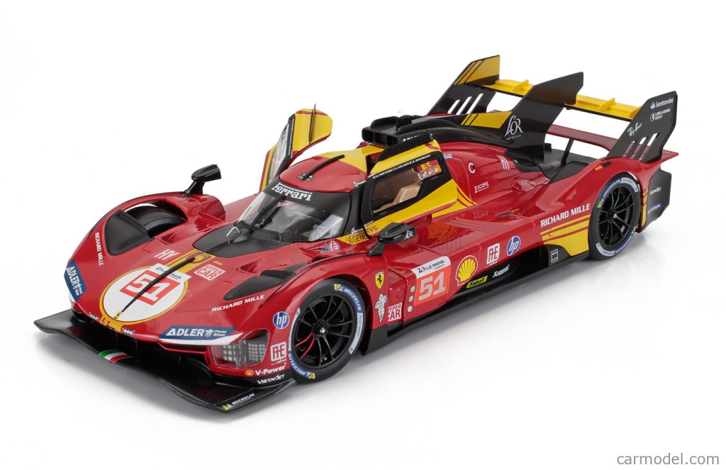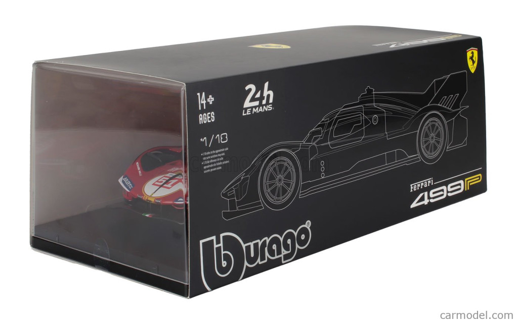 Burago FERRARI 499P 3.0L TURBO V6 TEAM FERRARI AF CORSE N 51 3rd 24h LE MANS 2024 ALESSANDRO PIER GUIDI - JAMES CALADO - ANTONIO GIOVINAZZI