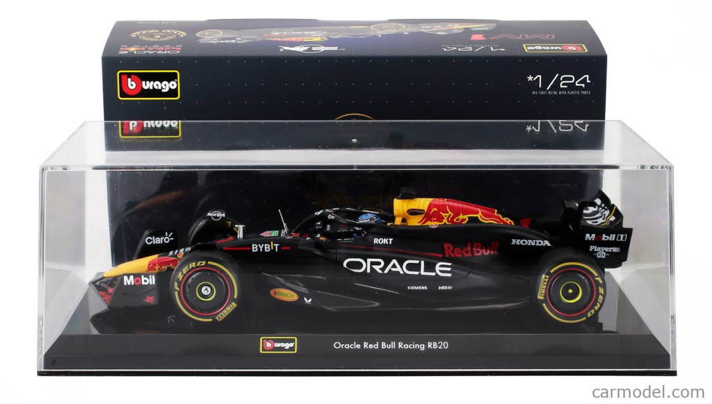 Burago RED BULL F1 RB20 TEAM ORACLE RED BULL RACING N 1 WORLD CHAMPION SEASON 2024 MAX VERSTAPPEN - WITH PILOT AND SHOWCASE