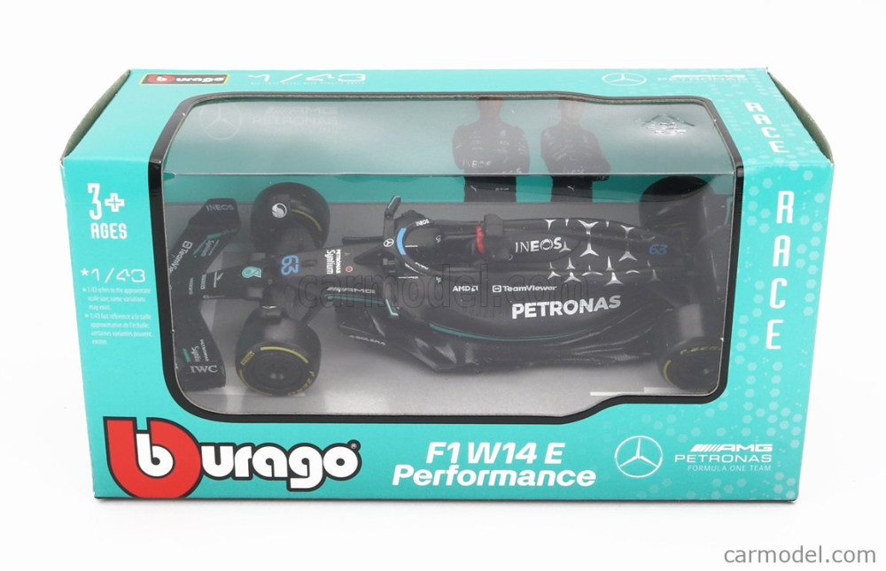 Burago MERCEDES F1 W14 TEAM MERCEDES-AMG PETRONAS FORMULA ONE N 63 SEASON 2023 GEORGE RUSSEL