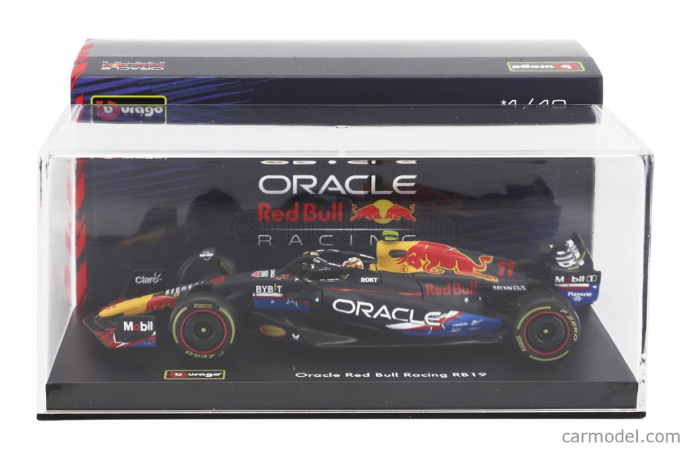 Burago Red Bull F1 RB19 TEAM ORACLE RED BULL RACING N 11 4th AUSTIN USA GP 2023 SERGIO PEREZ - WITH PILOT AND SHOWCASE
