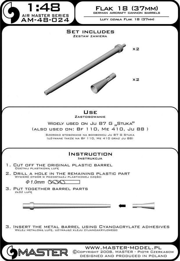 Master Model German aircraft cannon 3,7cm Flak 18 gun barrels (2pcs)
