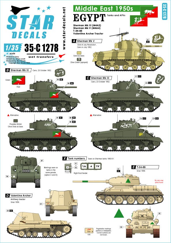 Egypt Shermans and T-34 tank markings.