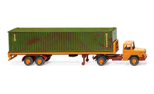 Wiking Magirus Flachpritschensattelzug, orange, with container
