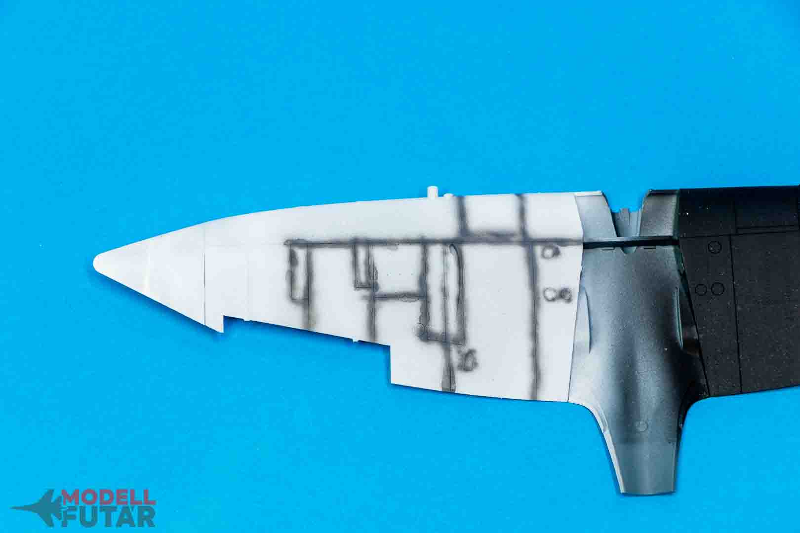 Alaposan felhígított szürkével 0.15-ös dűznivel végig fújtam a panelvonalakt. Én személy szerint két rétegben szeretem fújni, de van, aki egy rétegben fújja. Ízlés dolga.
